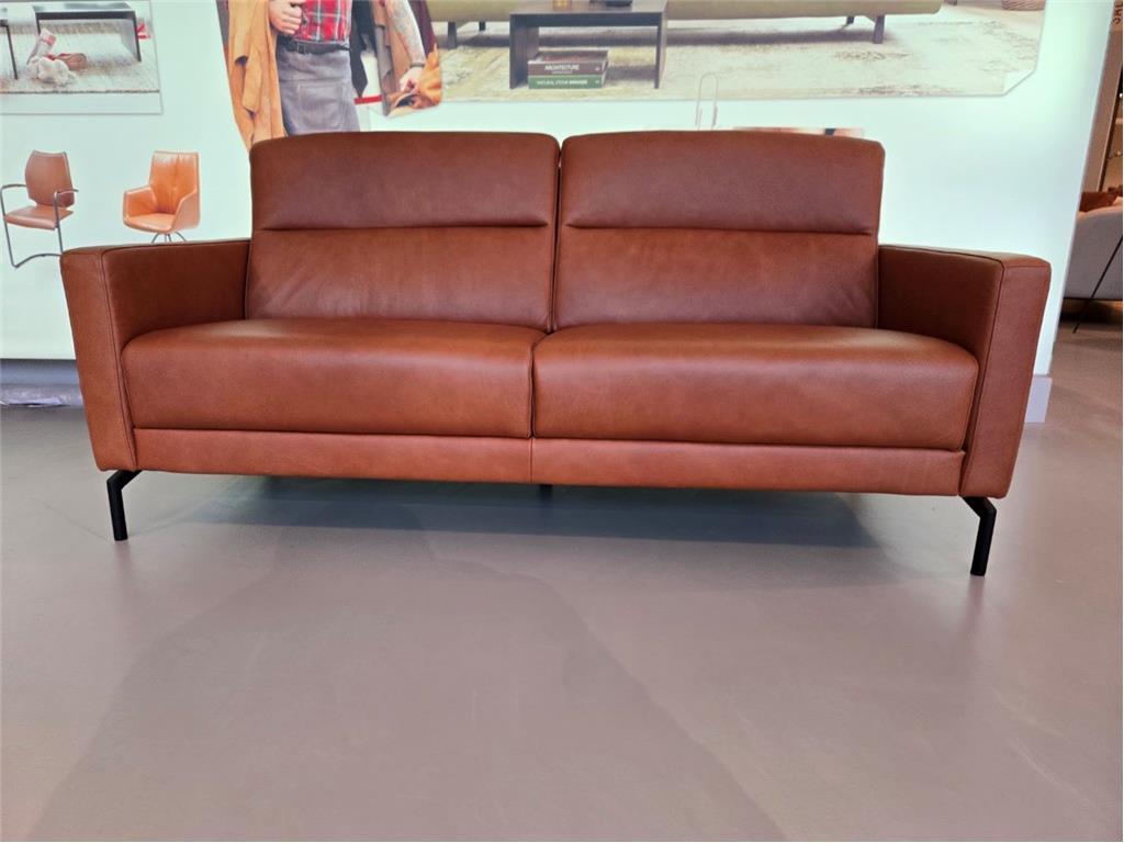 Luxe leren bank met handmatige uitschuif mogelijkheden.